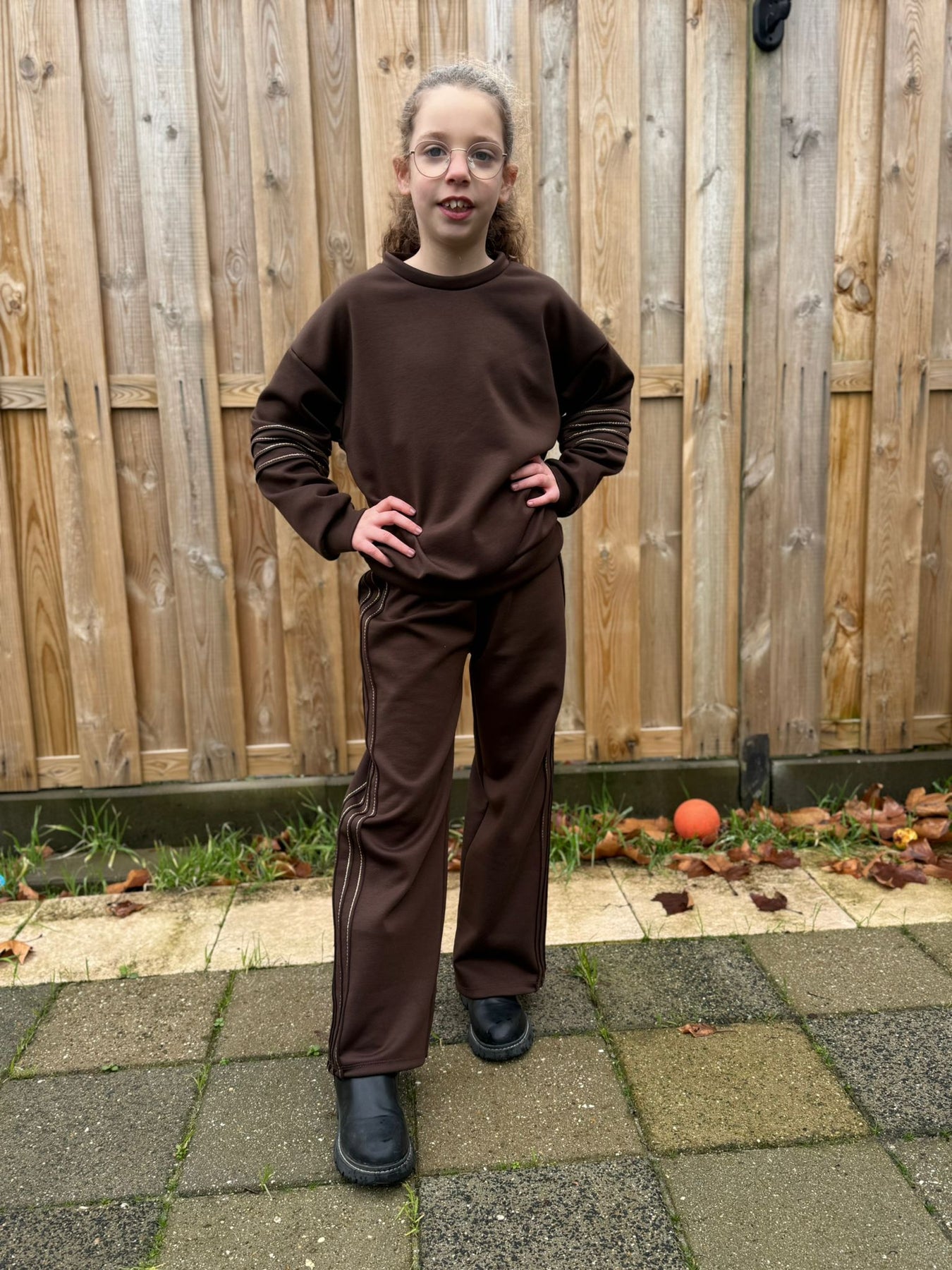 Deze stijlvolle set is ideaal voor meisjes die houden van comfort met een chic tintje! De zachte sweater en comfortabele straight-fit broek zijn afgewerkt met elegante stikseldetails langs de mouwen en broekspijpen. Perfect voor schooldagen, uitstapjes of een cozy dag thuis.
